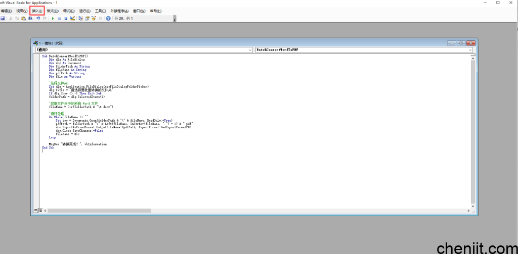 本文教你如何使用Word 内置宏,批量将指定文件夹内的 Word 文档(.doc 或 .docx)转换为 PDF,使用环境为windows。