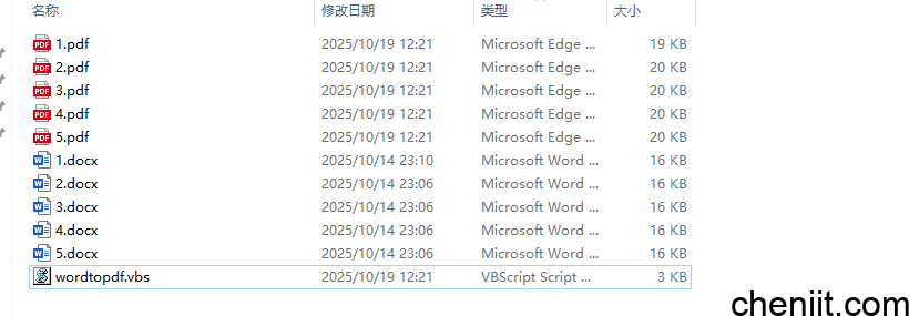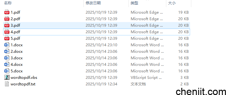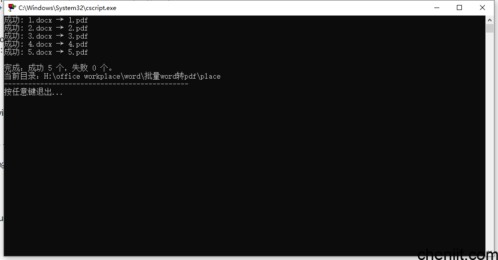 - 双击脚本就开工,把脚本所在文件夹里的所有 Word 都自动转成 PDF;