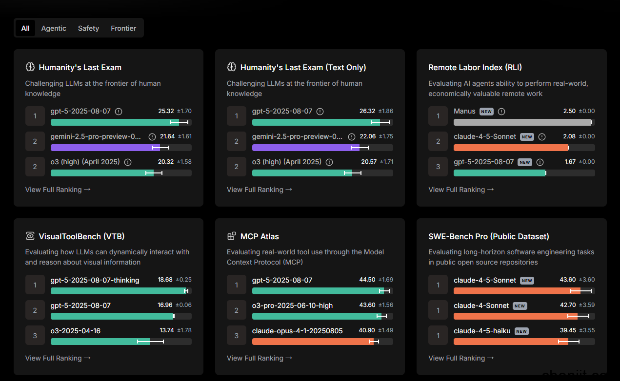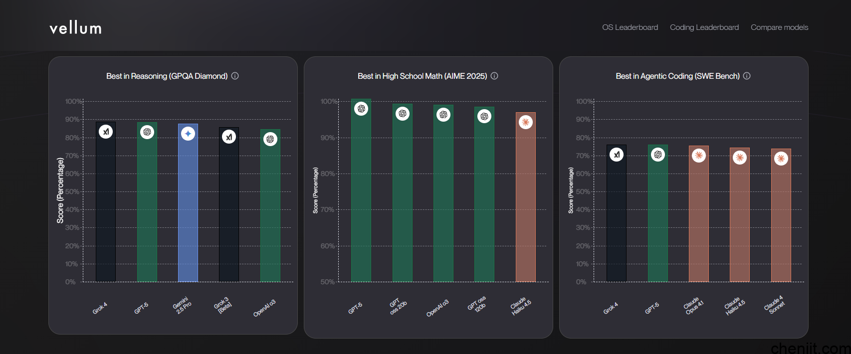 简介与特点:每日更新,展示模型(如 GPT-5、Grok-4、Gemini 2.5 Pro)的速度、上下文窗口、定价及性能。